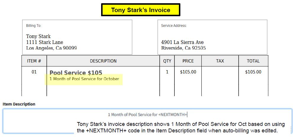 If you would like to show in the Item Description what month the Pool Service you are billing the customer for, this can be done quite simply when you configure the Auto-Billing settings for the customer. The settings can be either configured upon initial customer creation, or edited after-the-fact if the customer already exists in the system.