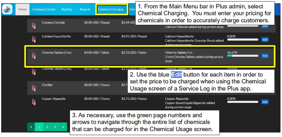 From there, you'll head over to Plus and set pricing to the chemicals.