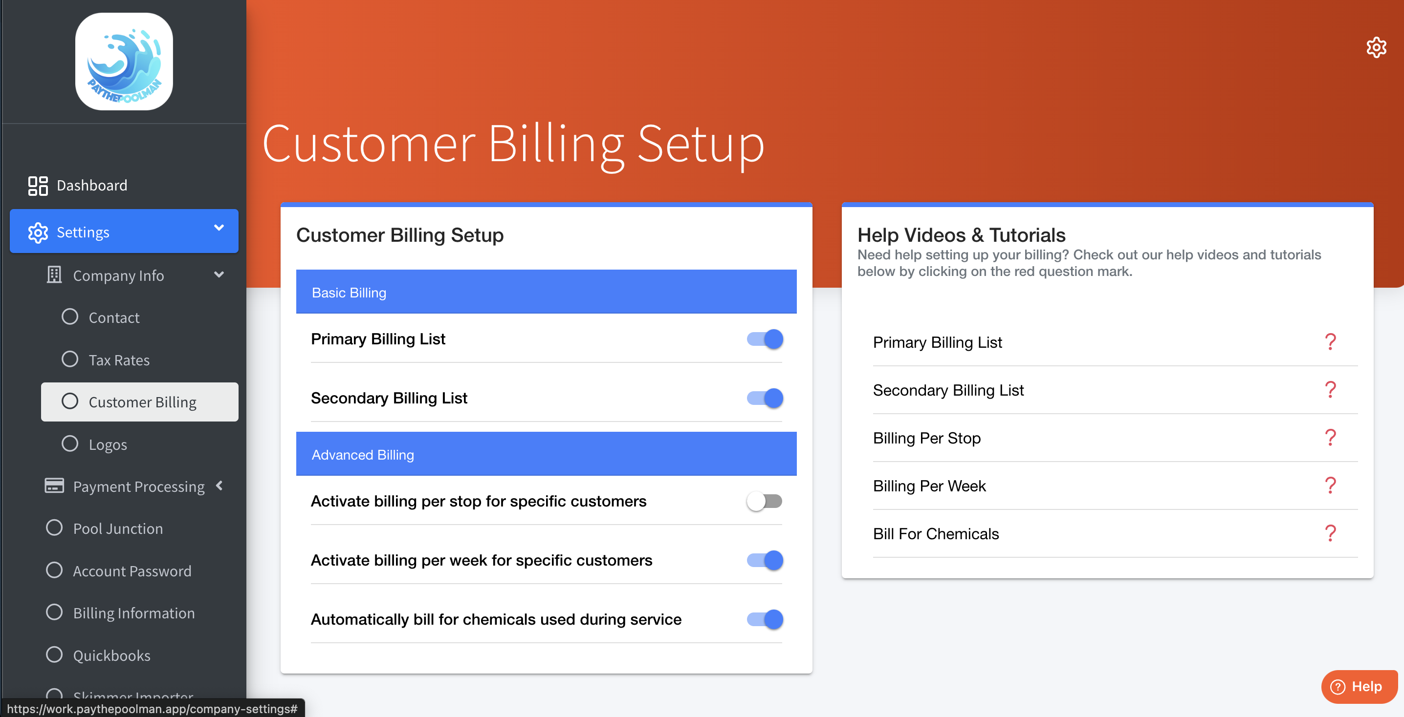 4. If you would like to add additional or advanced billing options to Customer Billing - these can be added on Company Settings Page.