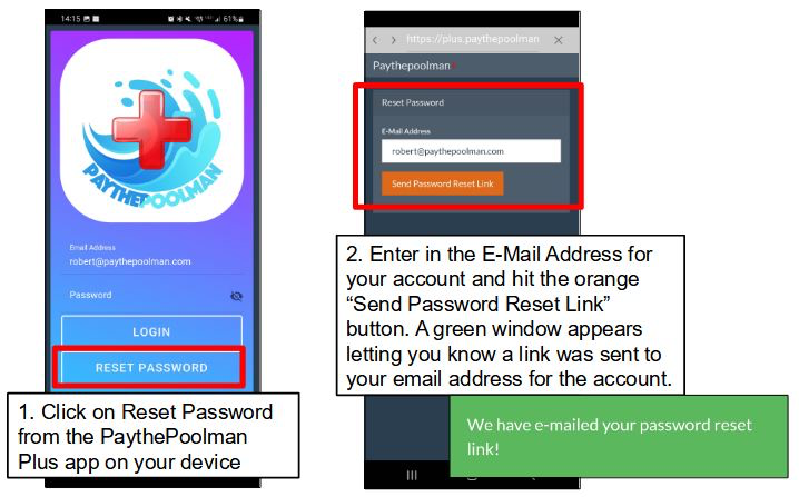 From your mobile device, follow the steps outlined in this guide to reset your own password for PaythePoolman Plus.