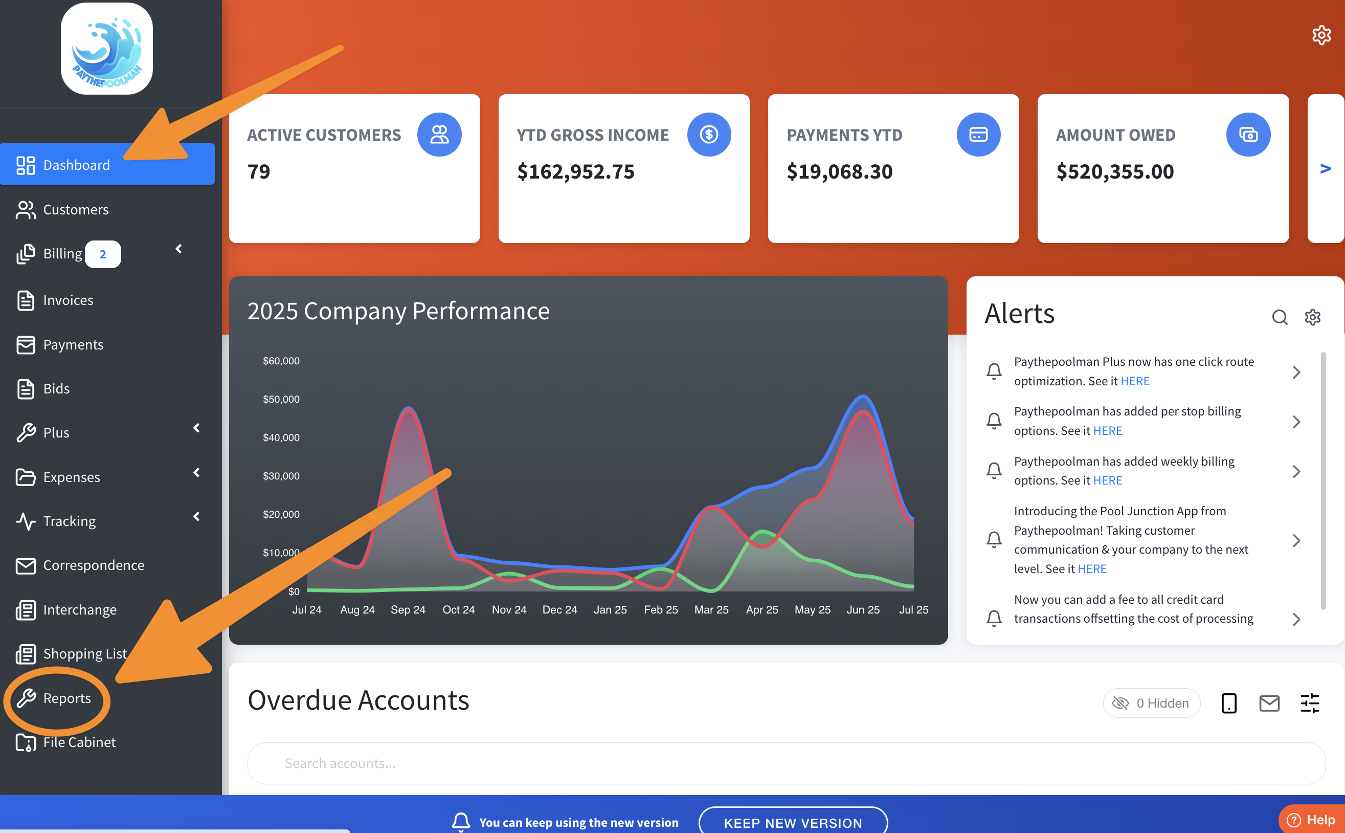 1) From your Company Dashboard, click on REPORTS located on the left of your screen in the black sidebar.