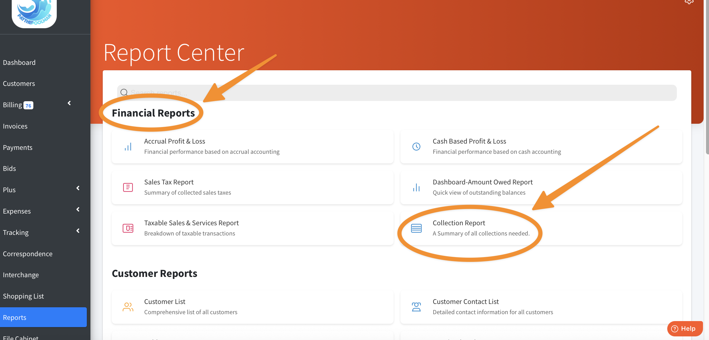2) Click on COLLECTION REPORT in the Financial Reports section.
