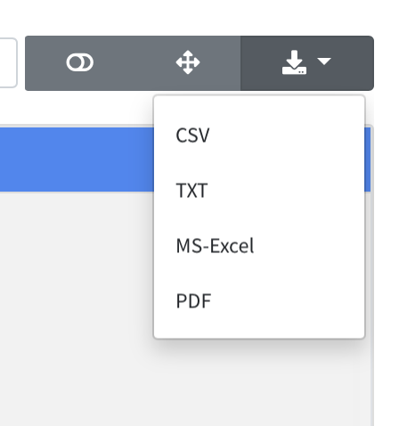 4) You'll also have export options, such as CSV, TXT, MS-EXCEL and PDF, by clicking on the down arrow.
