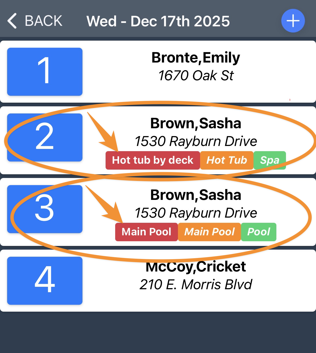 For example, a customer has both a pool and a spa that need servicing. As the water testing results and chemical needs of each water feature are unique, a separate service log needs to be performed for each. The steps detailed in this guide allow you to setup that customer’s location to be routed once in Plus, and have the technician service each water feature, entering chemical readings for each one separately.