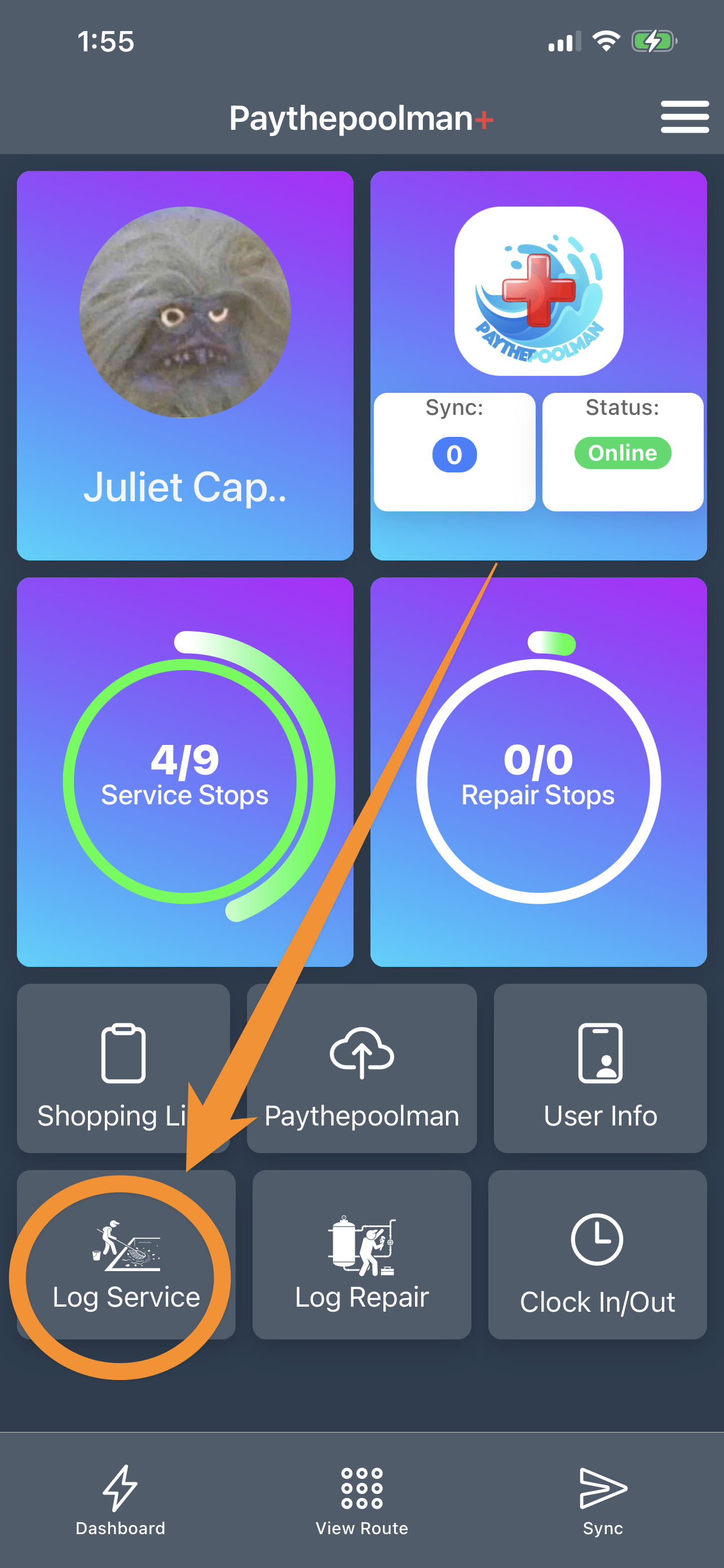 3. Now that you've confirmed the correct permissions, open your PLUS APP and click on the gray box to LOG SERVICE: