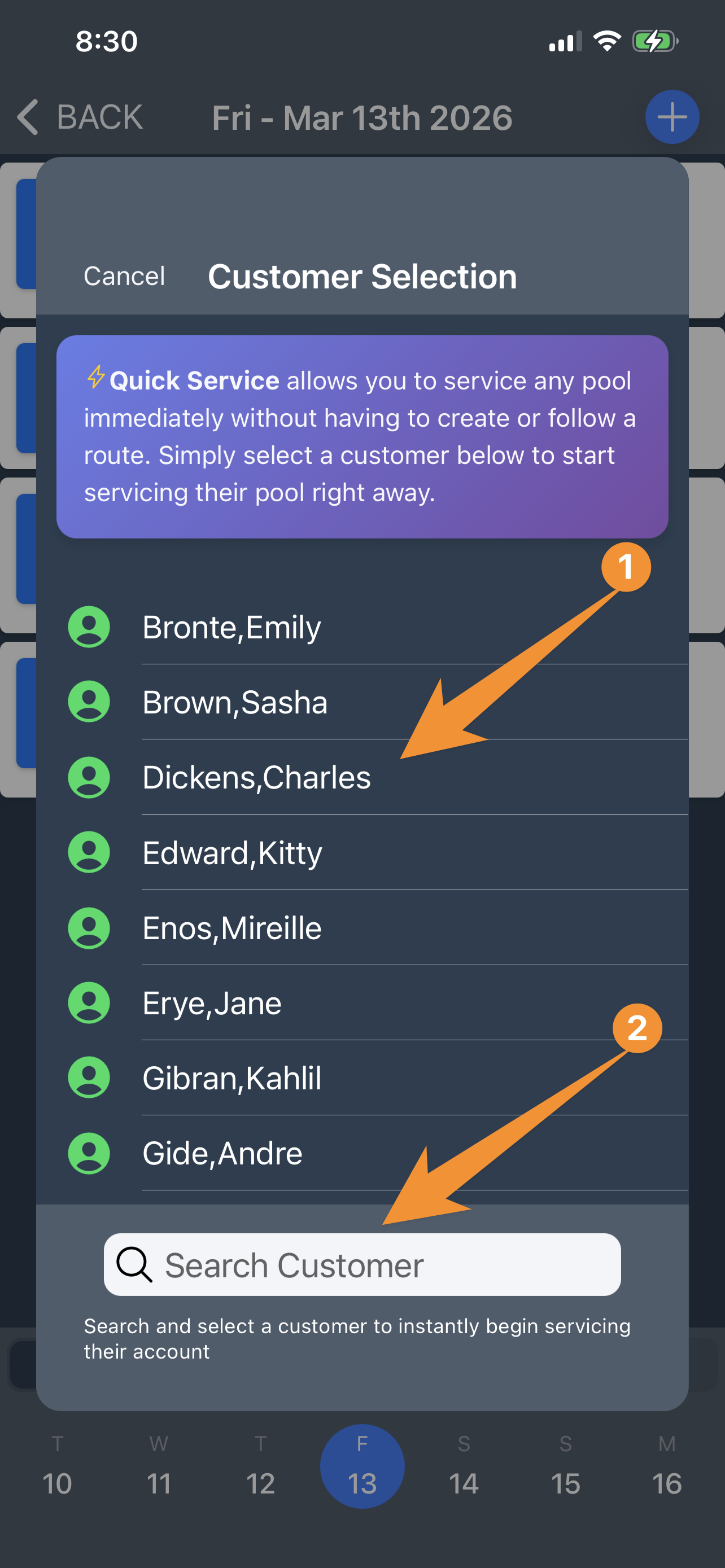 5. Scroll to find the customer you want to add, or use the search bar, then begin their service!